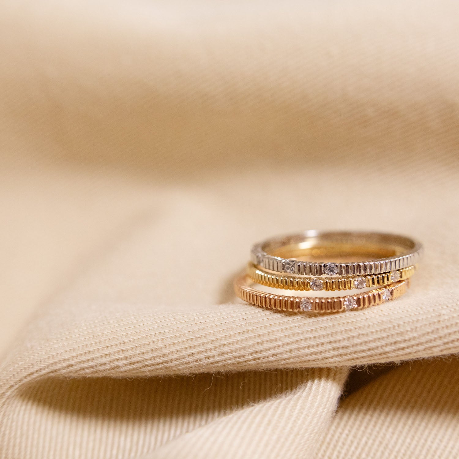 在Rhythm系列中,優雅尋得其脈動。每件作品都採用可回收貴金屬精工打造,與流暢、俐落的線條紋理共鳴,體現了精緻的工藝與對環境的堅定承諾。設計雖低調,卻擁有永恆的魅力,將奢華與簡約無縫融合。Rhythm系列,邀您擁抱風格與永續的交響曲。