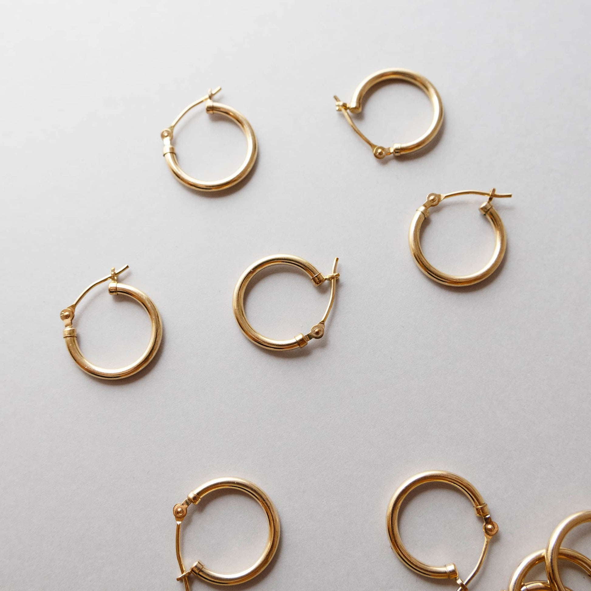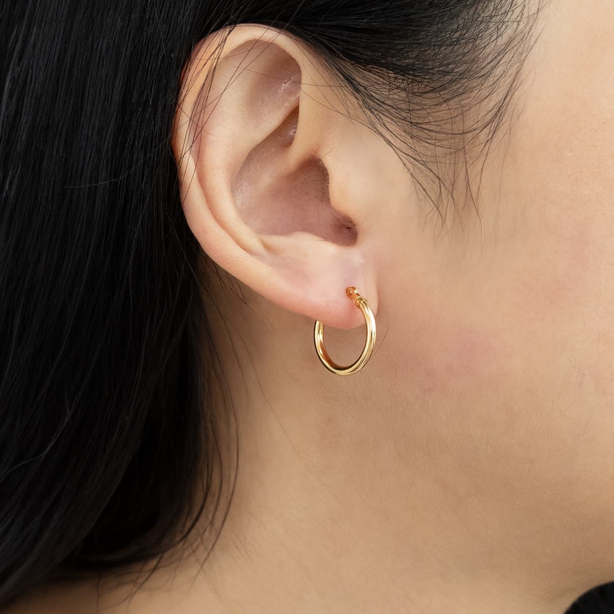 這款基本款耳圈,採用了精緻的裹金工藝打造,展現出優雅且經典的美感。在珠寶的金屬表面覆有一層厚K金,不僅提升了耳圈的光澤度,也增強了其耐用性,展現優異於坊間鍍金百倍的鍍金品質。