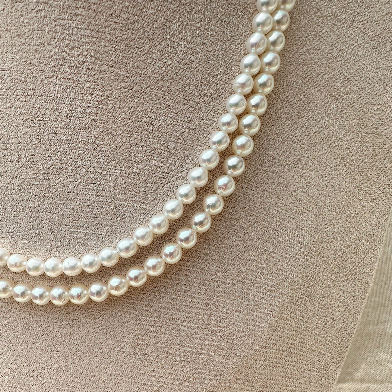 Akoya珍珠以其獨特的強潤光澤聞名於世,被視為珍珠中的典範,更有小燈泡的美名。因其純淨強烈的光澤和豐富色澤而受到推崇。這條項鏈在於日本神戶珠寶展上購得,每一顆Akoya珍珠幾乎完美圓潤。與市面上大多數經過顏色增強的Akoya珍珠不同,這串珍珠擁有未調色的純淨自然光澤,其光澤幾乎可與最高等級天女珍珠相媲美。