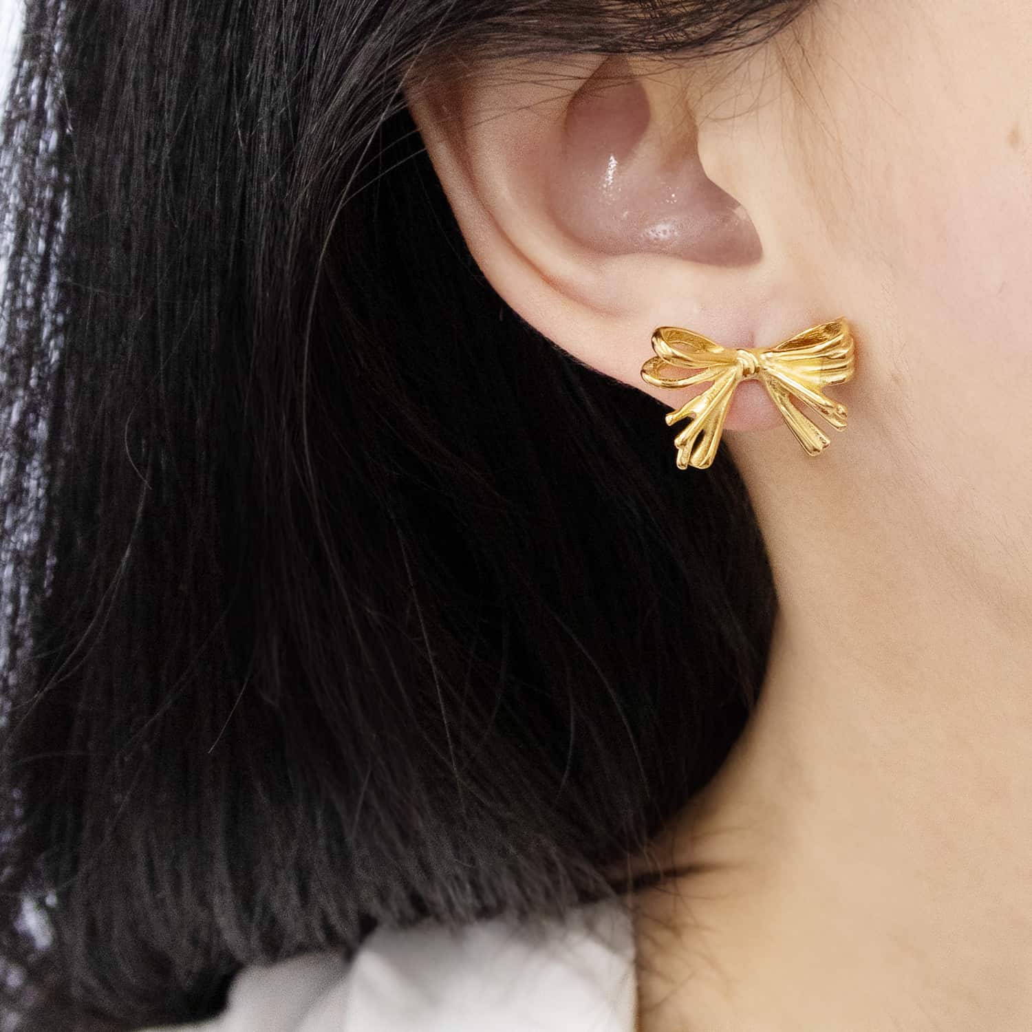 蝶結耳針,以其近期受矚目的蝴蝶結做為發想,捕捉了蝶舞的畫面。金色的流暢線條以蝶翼為意象輕觸著臉龐,帶來不經意的高雅。細膩的質感與溫潤的光澤,宛若蝶羽輕觸肌膚,喚起佩戴者的每一次優雅轉身。,見證每一次的成就與喜悅