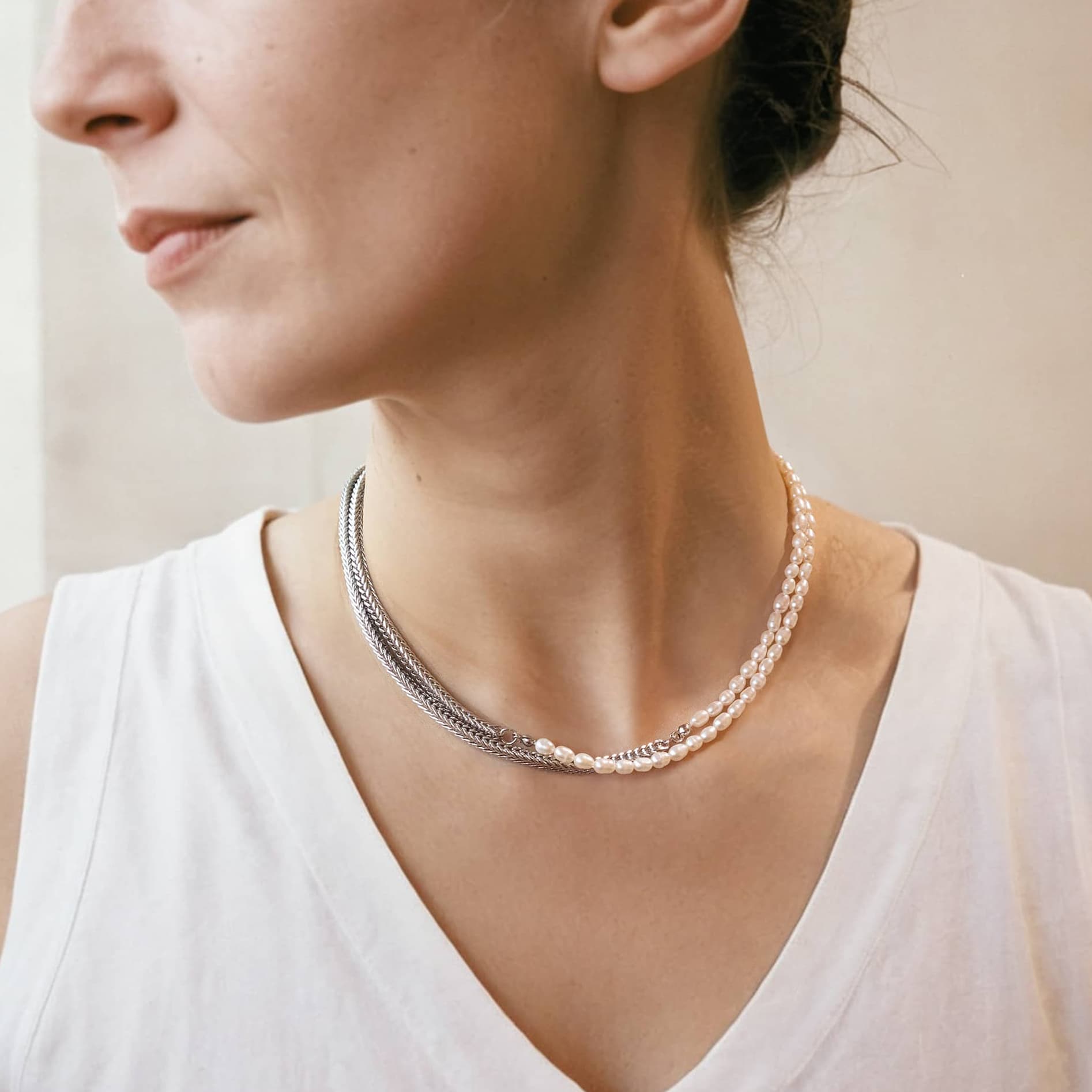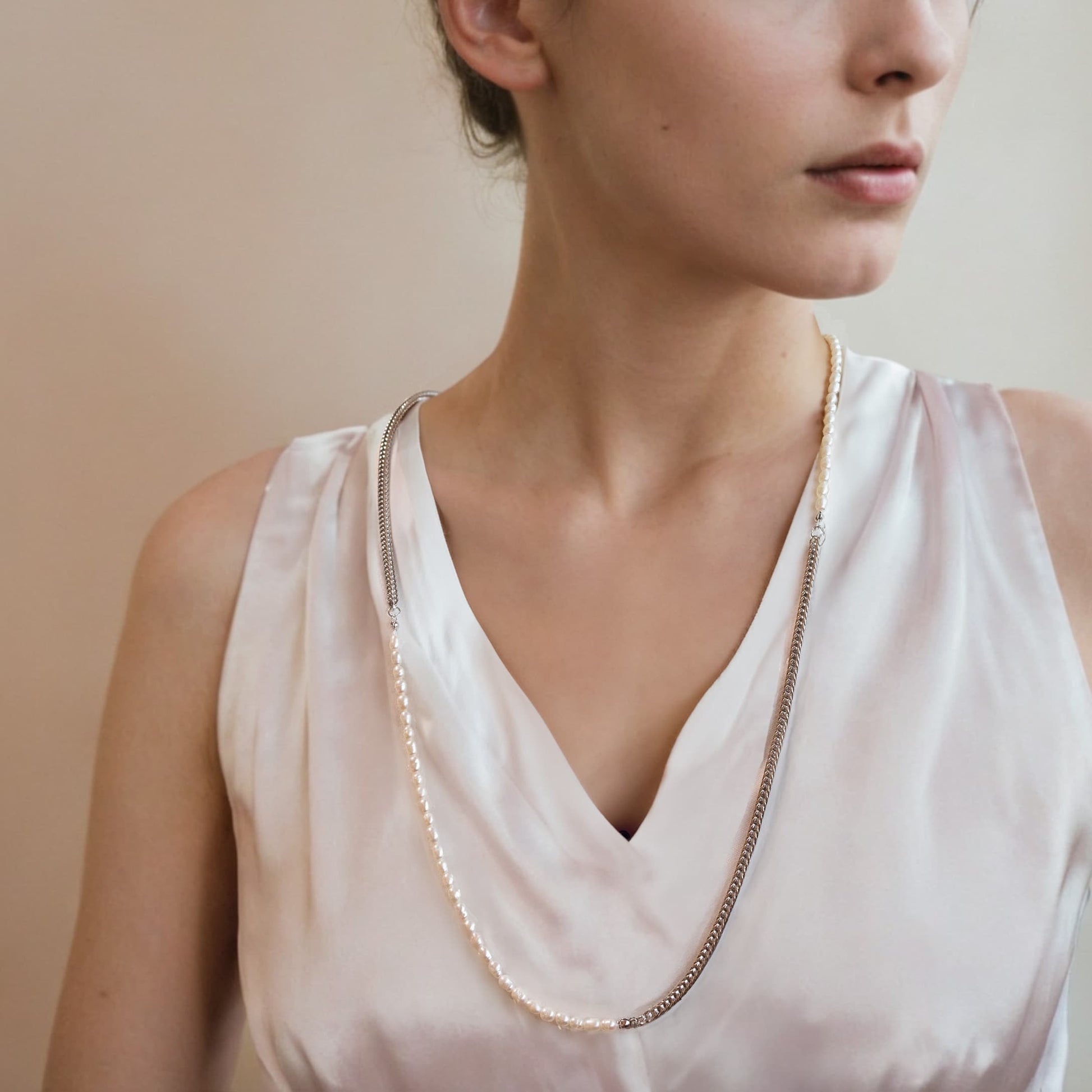 這款作品能夠以雙層短鍊或單長鍊的形態佩戴,珍珠與銀色麥穗的結合在不同佩戴方式間自如切換,完美適配各種場合與風格。讓你我都能在日常生活中找到屬於自己的詩意與優雅。