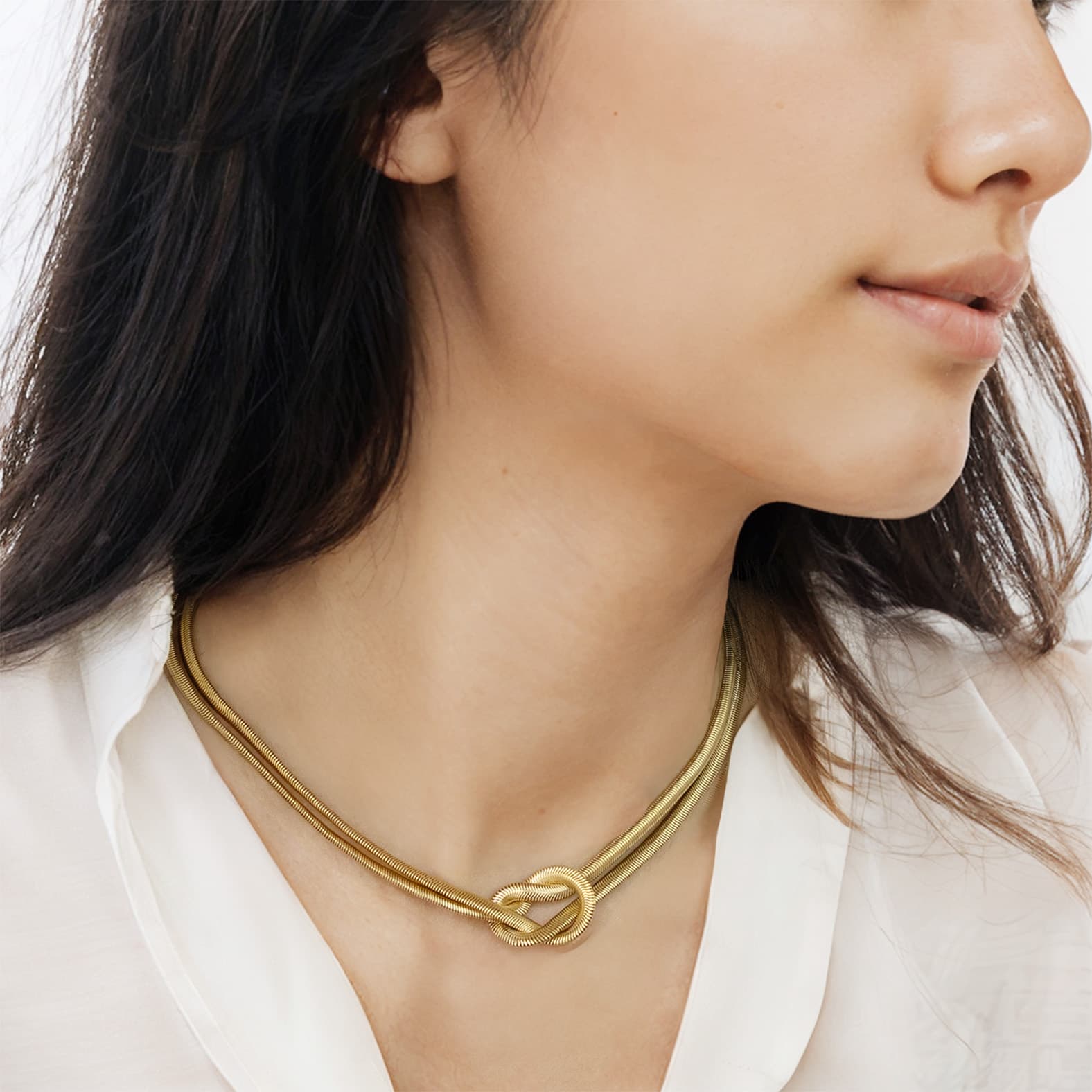 無限的輪廓,繩結的靈動,這件頸鍊作品以蛇鍊作為基底創作,有開始而無終點。緩緩環繞,徐徐前進,將優雅和力量巧妙地融合。在不經意間,這耳圈讓佩戴者散發出不羈的風采,彷彿自身故事的輪廓也隨之變得更加分明。它們不僅是耳饰,更是一個個獨立而完整的諾言,代表著永恆的承諾與希望。