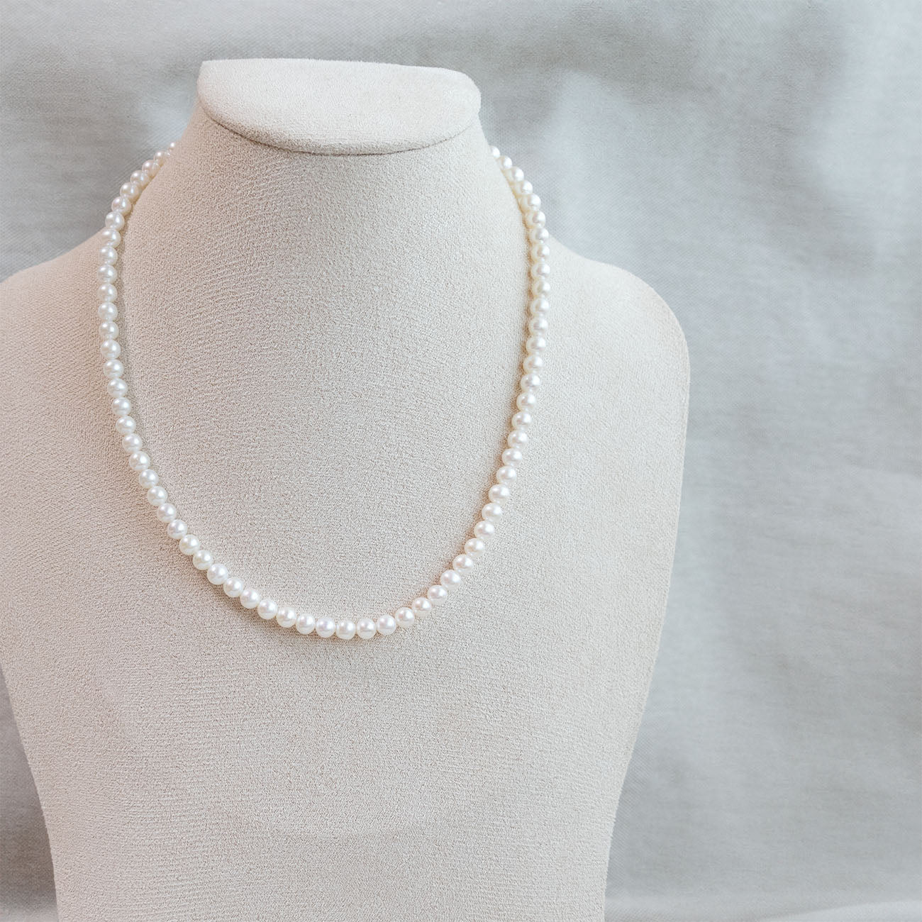 讓Lively為您呈現迷人的迷你強光淡水珍珠項鏈。此項鏈串連經過嚴格挑選,擁有強烈光澤的近正圓淡水珍珠,直徑介於為5-5.5mm,相較於傳統的大尺寸珍珠,擁有更細緻的外觀。可與任何首飾優雅疊戴,顯露出低調奢華感,為每位配戴者帶來每日的精緻與優雅。