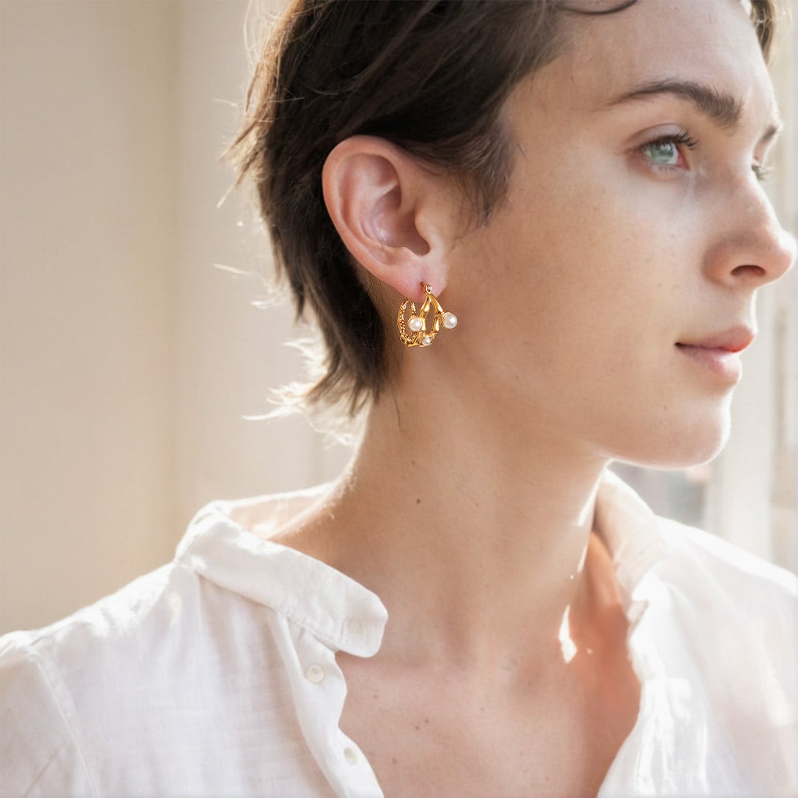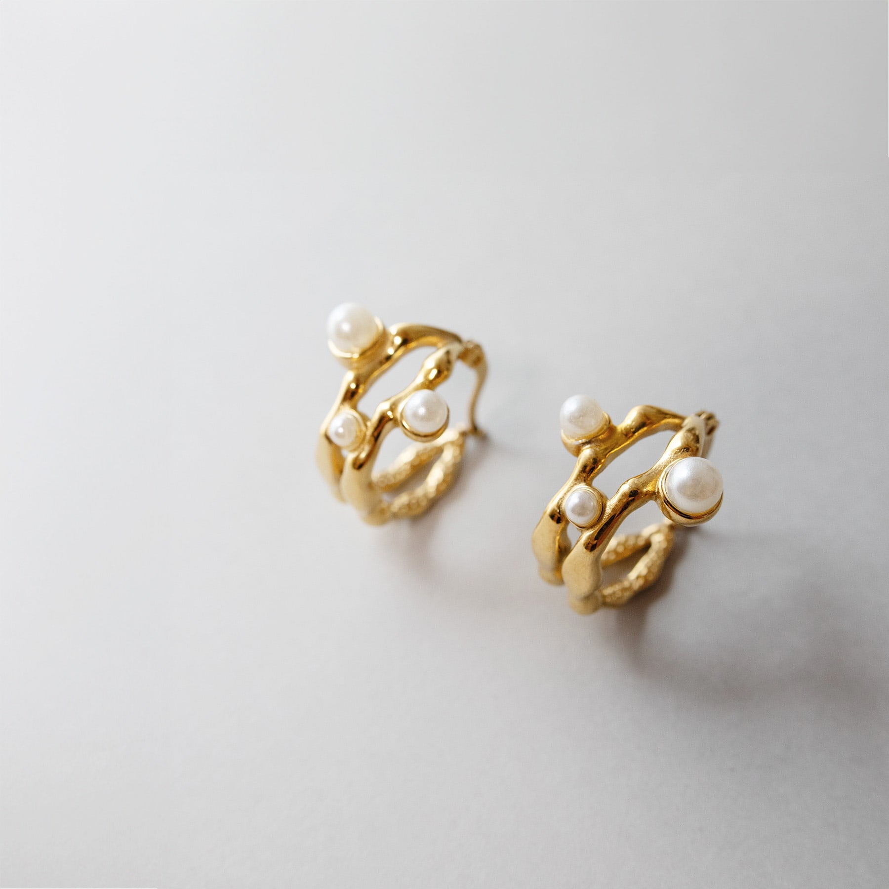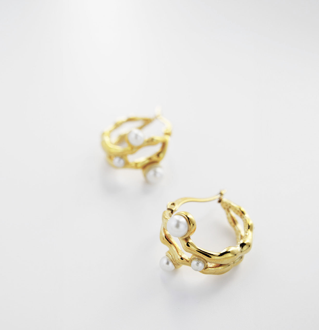 由漣漪搭載著珍珠的意象,仿如由流水的律動中誕生,珍珠散發著獨特的閃耀,它們捕捉著時光的律動,彷彿佩戴者的心跳也隨之輕盈跳躍。而這份設計,是對自然之美的深情致敬。不論日出或日落,這耳針總帶來無盡的夢想與靈感。"