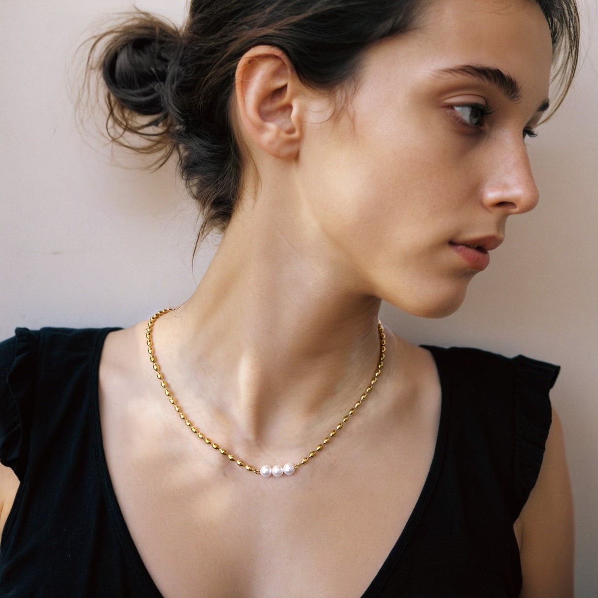 在以維梅爾畫作中的珍珠描繪和柔和光影流動作為靈感,我們在設計時選用了經典鍊體如雙排珠鍊,麻花細鍊,交織排鍊,並透過加入簡約的球體墜飾和優雅珍珠,呈現具現代感的清新古典。