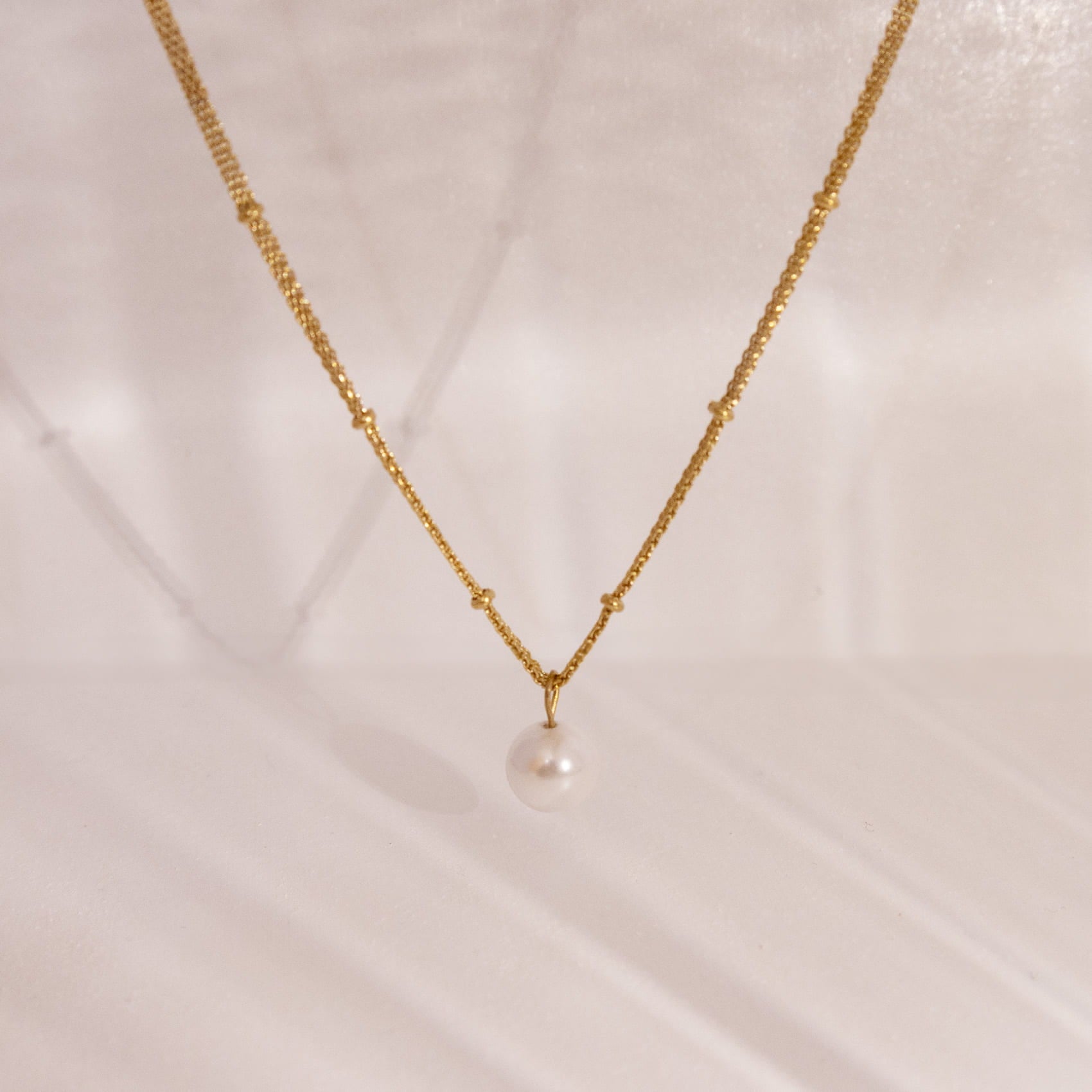 新生珍珠以手工緻密堆疊深海中的碳酸鈣,打造出傲人閃耀光澤。「新生」象徵復甦,代表回收破碎的珍珠並賦予它們新生命,體現永續理念的過程。