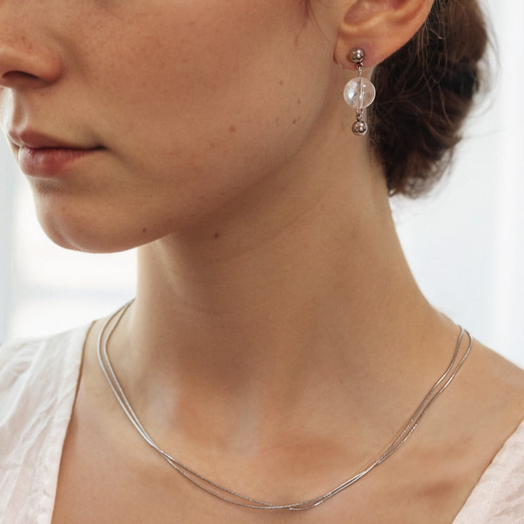 夏日維梅爾|垂墜白水晶耳環 (限定版)