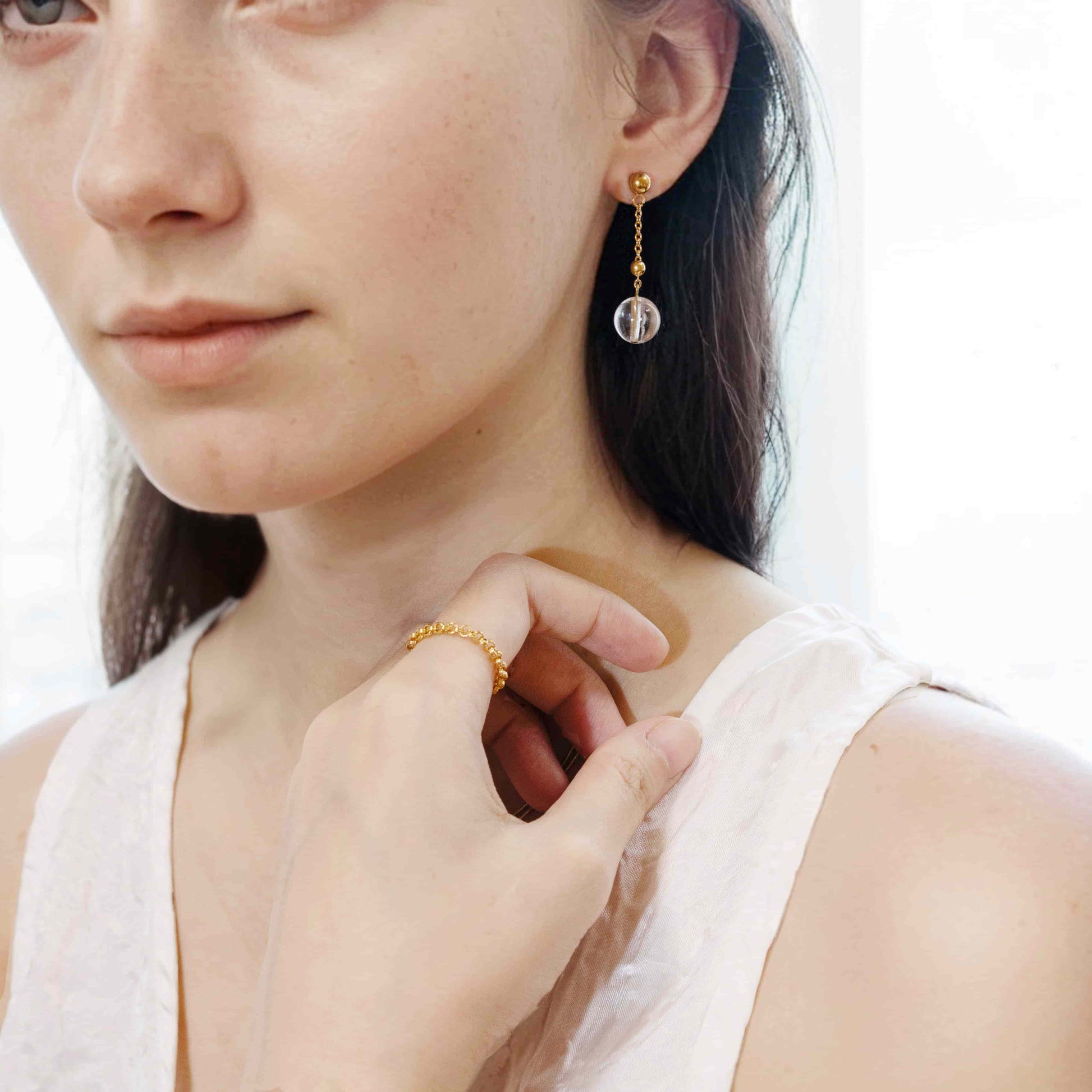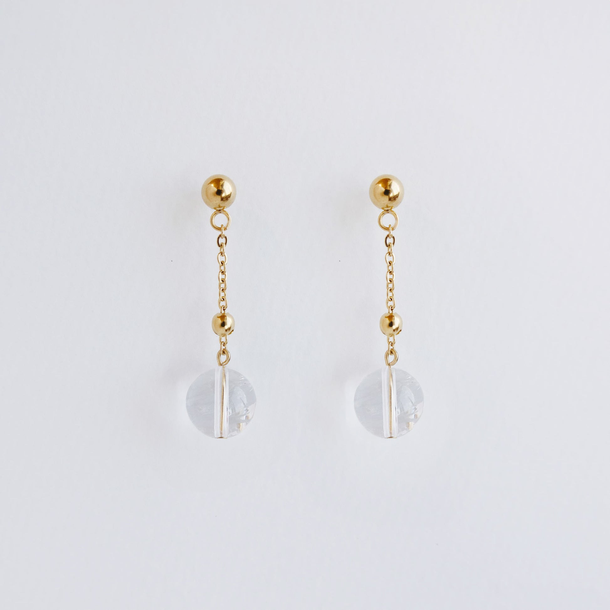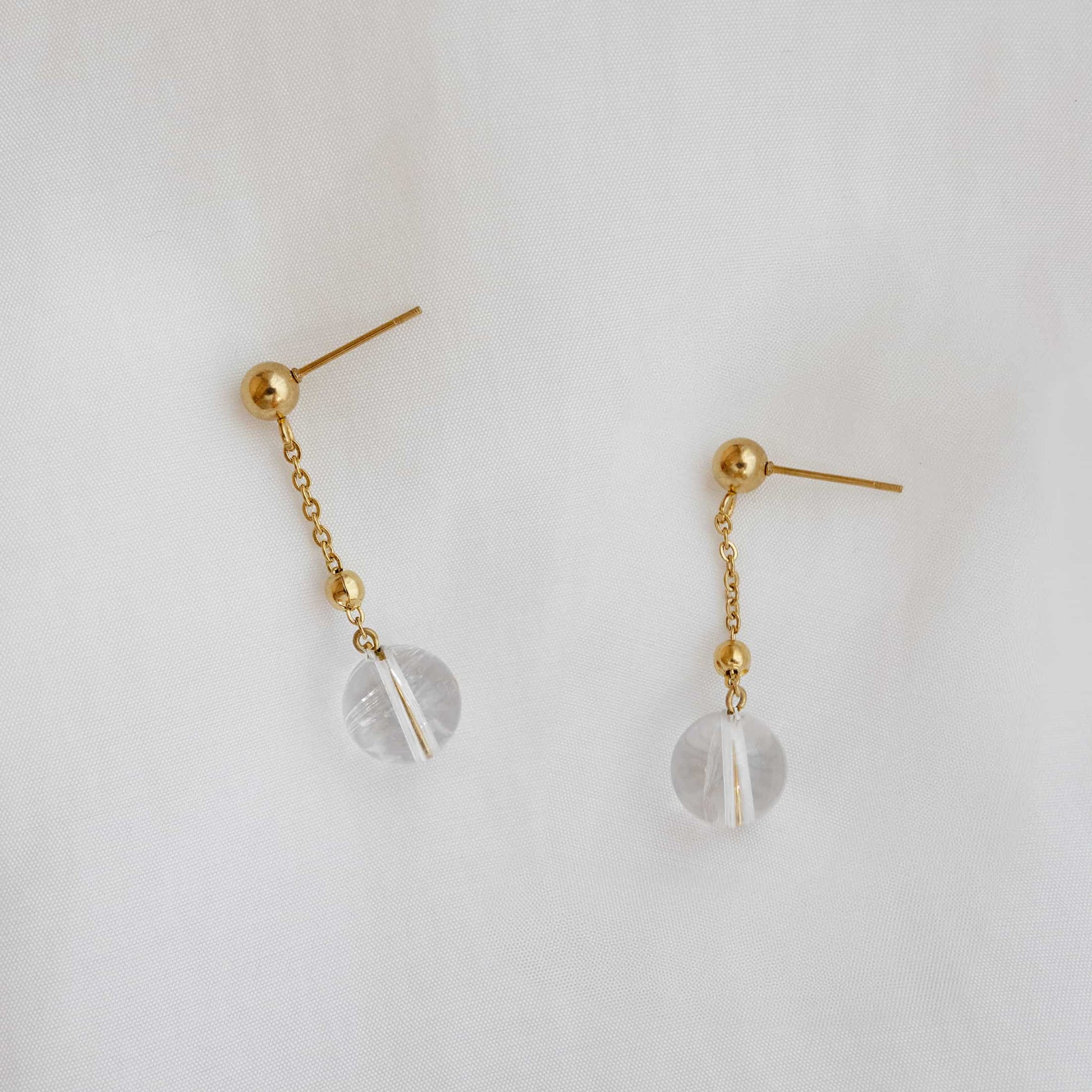 夏日維梅爾|垂墜金鍊白水晶耳環 (限定版)