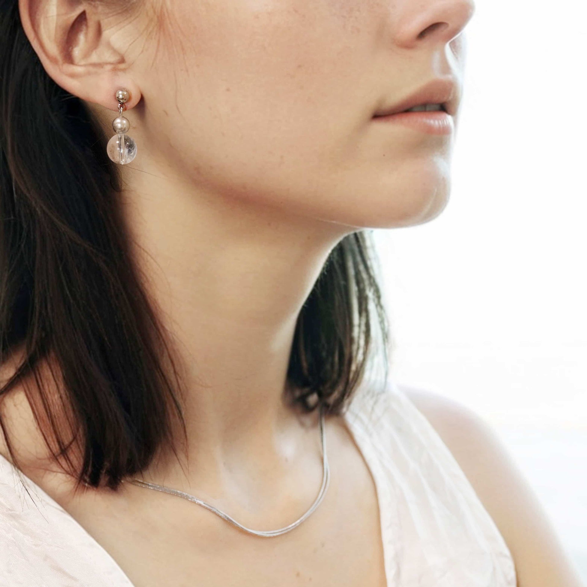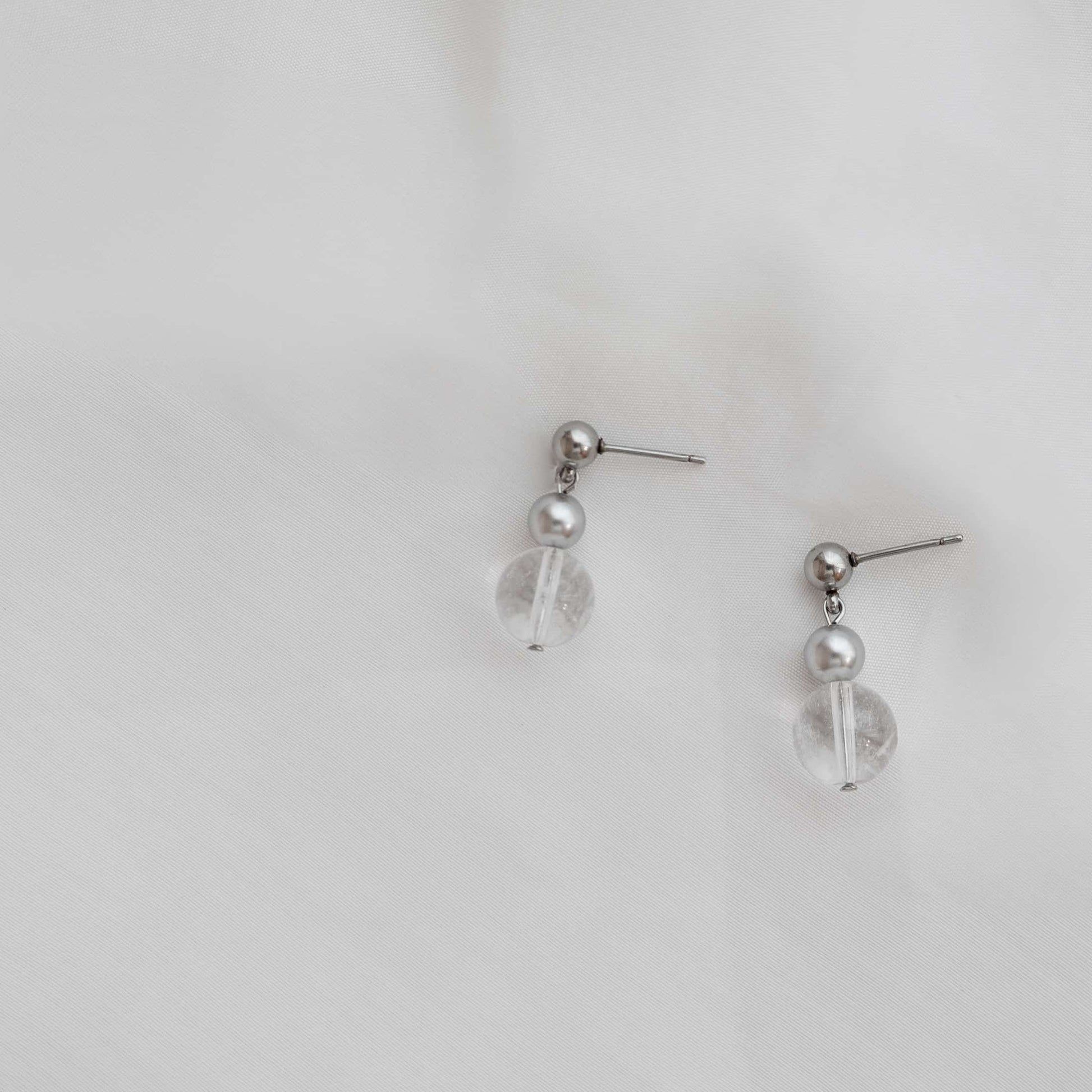 夏日維梅爾|漸變白水晶真多麻灰珍珠耳環 (限定版)