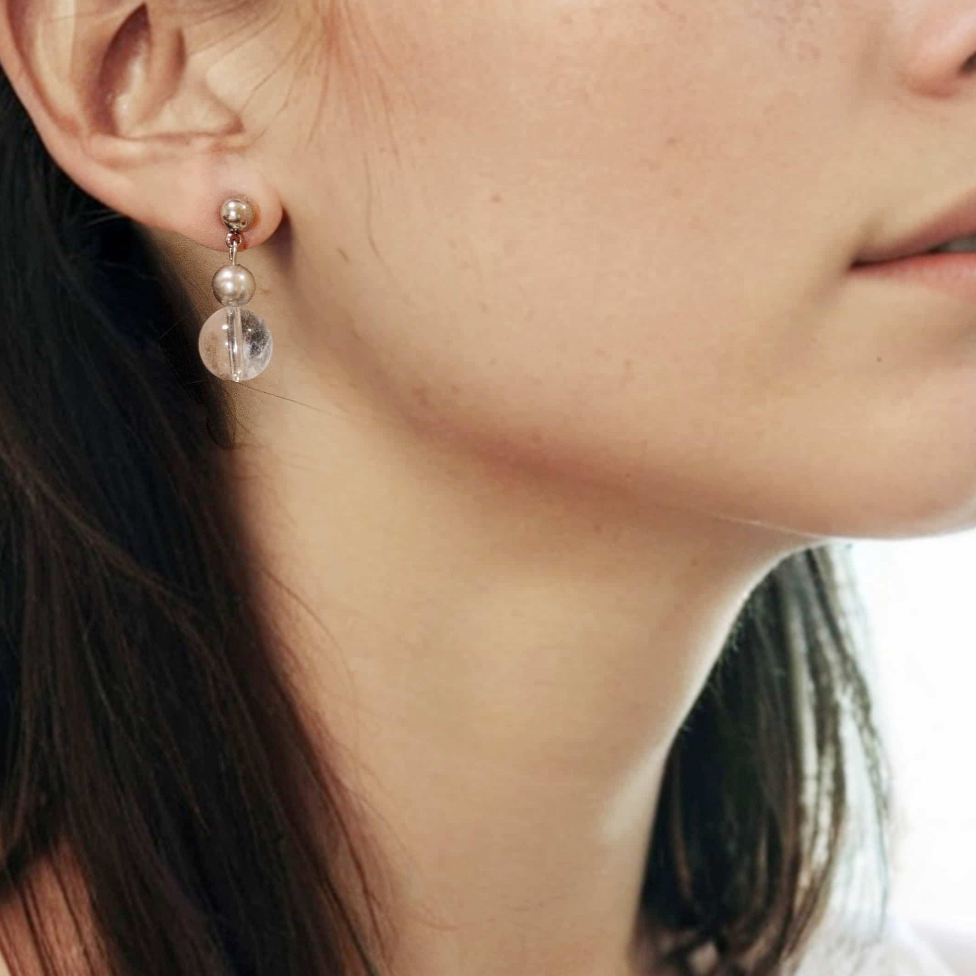 漸變白水晶真多麻灰珍珠耳環 (限定版)
